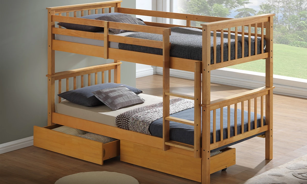 Двухъярусные кровати — это мебель с одним, двумя и более спальными местами, расположенными на двух этажах. Для доступа ко второму ярусу используется лестница. Она может быть классической навесной, приставной или даже выполненной в виде ящиков, размещенных друг на друге и образующих ступени. Под основанием нижнего яруса часто находятся выдвижные коробы для хранения белья или других вещей.